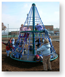 Because Dynamo’s Rotating Climbers and Biggo Flyers accommodate lots of children at one time, you need fewer of them to provide the same amount of play capacity as traditional structures. This translates into less space required for the playground and less cost to make great playgrounds a reality. At Dynamo, we believe that playgrounds should be exciting for kids, and school playgrounds should be no exception!