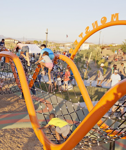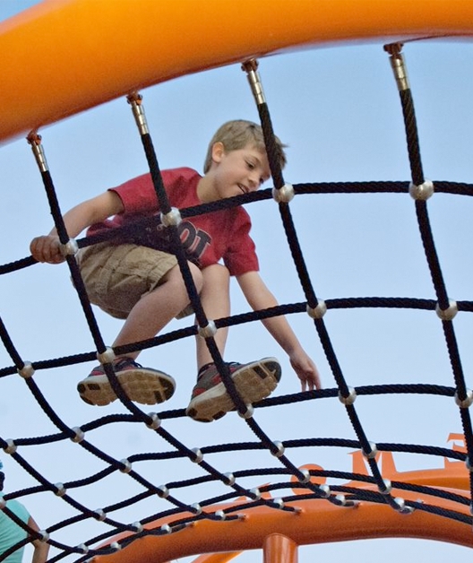 This one is definitely a favorite. With it's rises and falls, this 2- part ropes course offers an exciting climb at their local playground. Kids can imagine a new adventure, ending in a thrilling spiral slide!